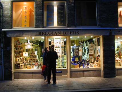 Three of the 600+ beers brewed in Belgium and the store we wished had been open.