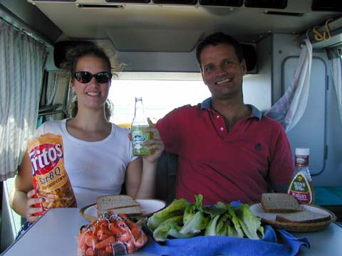 Picnic in VW camper aboard the Ocracoke, NC ferry.