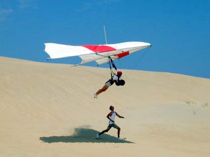 Family Kern takes glider lessons at Kitty Hawk, Sue in flight.