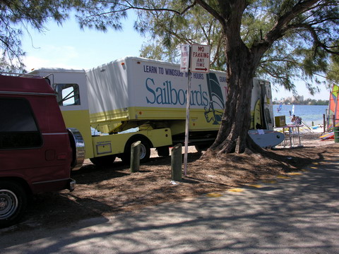 There were colorful boards and sails carefully displayed along the water’s edge by the local sailing school, Sailboards Miami and international windsurfing manufactures anxious to show their new wares. Those new to windsurfing were given free lessons and allowed to try out brand new equipment provided by Aerotech, Exocet, Sandy Point Progressive Sports and BIC (yes, the guys who make the lighters and pens). Shortly after lunch the wind would fill in to required 8 knots or better and the race was on.